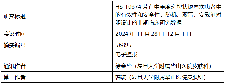 CDA 2024 | k豆钱包TYK2抑制剂HS-10374用于治疗中重度斑块状银屑病的Ⅱ期临床研究积极数据发布